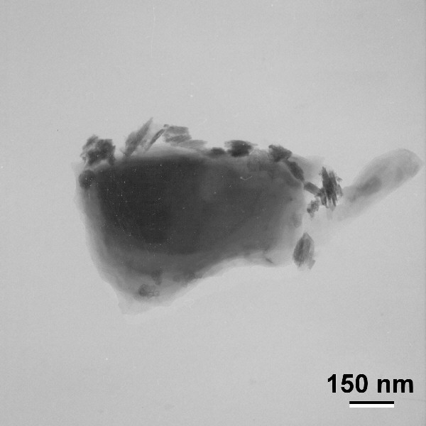Air-dried TiO2 / SiO2 suspension on carbon coated copper grid